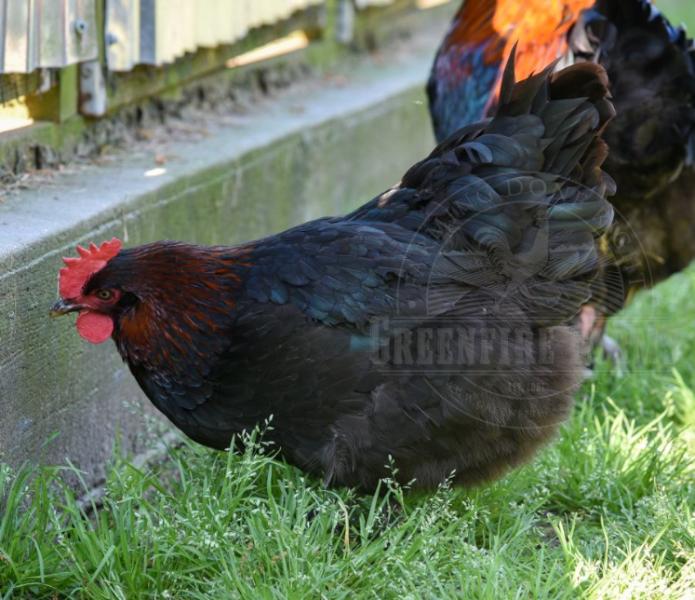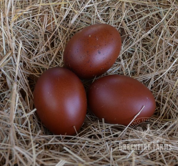 We are now pleased to offer the offspring of black copper Marans that are blended from the best breeding stock we could find: from a French national champion egg line, from a French national champion exhibition line, and from an excellent American line that was officially certified compliant with the APA standard by an APA judge. Our goal was to create a Greenfire Farms’ bloodline with the best genetics available, and we believe we succeeded. Some of the eggs are the darkest Marans eggs we have ever seen, and when they first began laying, we were blown away by the depth of the brown egg color that was produced. It was a magical moment on the farm and will probably be one in your chicken coop as well.