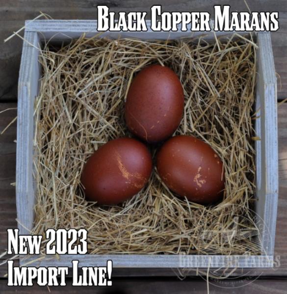 In 2023 , we imported a new egg champion bloodline of Black Copper Marans from France and we are so excited to begin offering them to Marans enthusiasts in 2025! We will maintain separate flocks and sell this newer line as Black Copper Marans (2023 Import Egg Champion Line) to distinguish this line from the other line. While we continue to increase our flock size, the availability of chicks and hatching eggs will be limited.