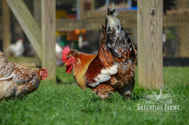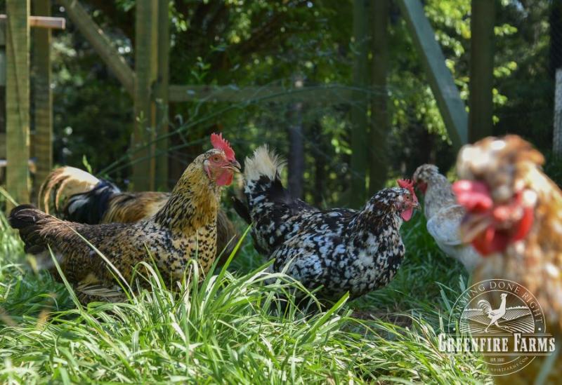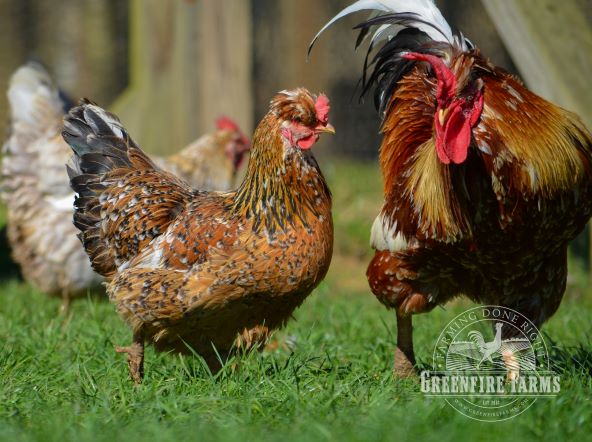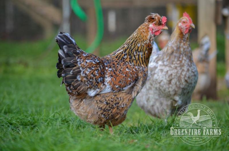 Swedish flower hens are the largest breed of chickens native to Sweden. Roosters can weigh as much as 8 lbs. With the commercialization of Sweden’s poultry flocks in the last half of the 20th Century, this breed almost became extinct. A couple of decades ago remnant flocks were identified in three small, rural Swedish villages and a focused effort was made to save the breed. By the late 1980s fewer than 500 birds existed in the world. Today, about a thousand Swedish flower hens live in about fifty scattered flocks, and until Greenfire Farms began working with this breed, few if any could be found outside remote villages in Sweden.